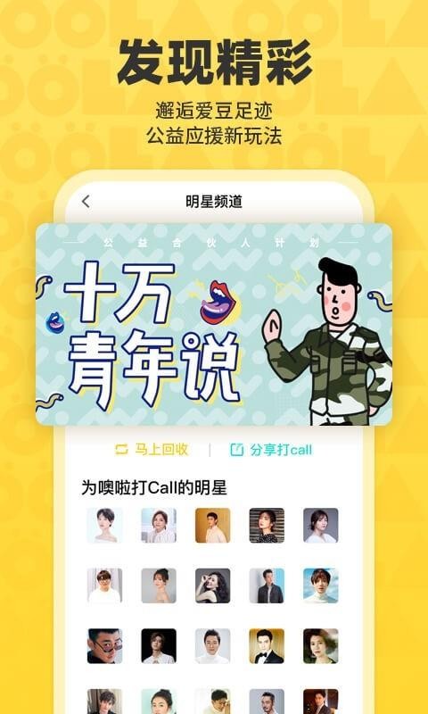 6、为用户提供明星频道,在线这里你可以看到为应用打call的明星信息,了解爱豆足迹;