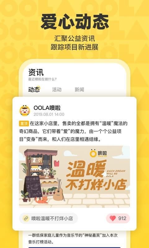 6、应用会为用户显示各种爱心动态,汇聚各种公益资讯,了解更多公益项目;