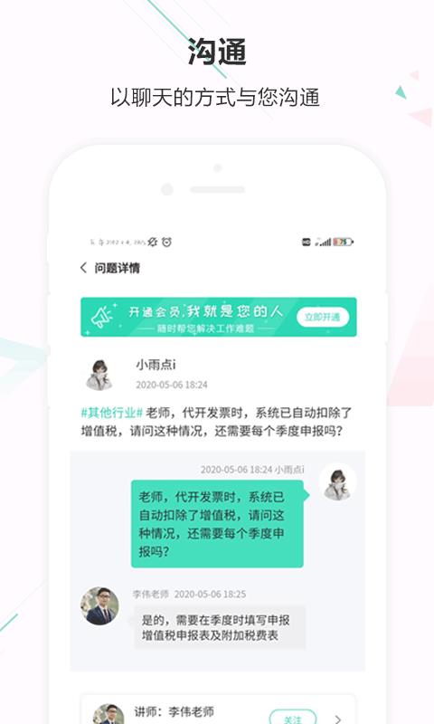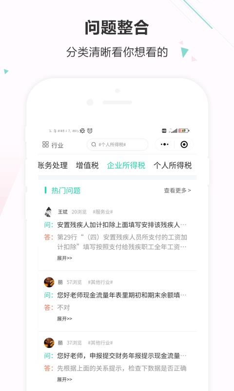 会计宝是财务人员解决问题的平台,该软件汇集了超多经验丰富的会计、财务主管、财务总监等,你可以向他们咨询任何财务问题,并拥有专业的态度为你进行解答;可以在该平台中解决的问题有财务处理、增值税、企业所得税、个税、发票等,选择相应的分类还可以查看提供的热门问题与回答;你可以在该平台中快速的进行提问,直接描述你的问题并发布在这里,就可以等待专家的回答,还有可能得到多个专家的回复,为你提供不同的解决思路;同时还可以与专家进行一对一的交谈,私聊更能让你充分的询问问题的详情。