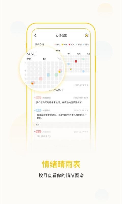 2.情绪晴雨表,按月查看你的情绪图谱;