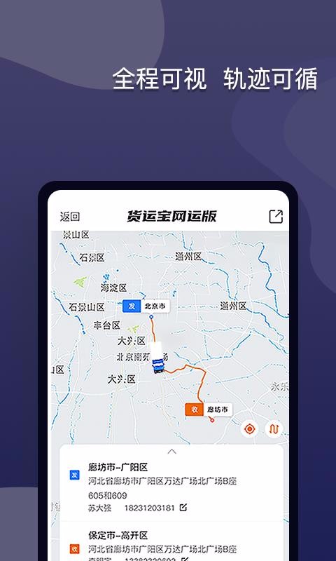 货运宝网运版是一款智能的货运服务管理软件,主要为需要运货的用户提供承运服务,随时随地都能在线下单货运订单需求;系统根据用户使用该应用下单的情况以及使用的情况统计了相应的使用数据,比如可以在主页看到自己订单的报告数据信息;用户能在平台上看到货运物流的全程动态信息,包括从出发地到目的地经过的每一条线路以及每一个城市,还能看到承运车辆当前所在的位置情况,抵达目的地后还会有相应的信息提醒;在货运过程中除了可以看到地图上信息之外,同时还可以看到起始地点与目的地地点中的详细信息内容,支持对里面的联系方式中途修改。