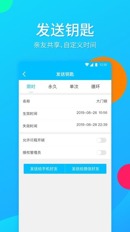 1、发放钥匙时可以随意选择钥匙的类型、生效和失效时间等信息,满足不同需求;