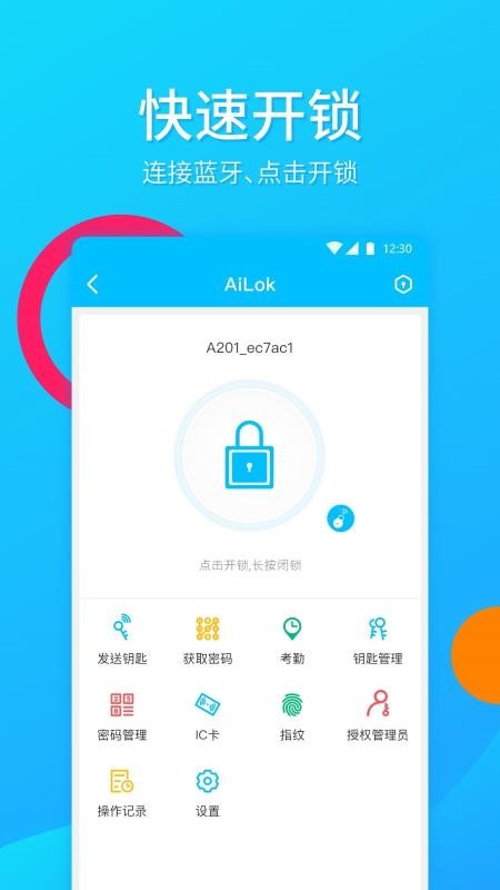 4、点击图标快速开锁,长按可以闭锁,发送智能锁钥匙给自己的朋友和家人
