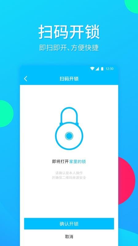 6、应用中有扫码开锁功能,通过扫码方便快捷的打开家中的各种智能锁;