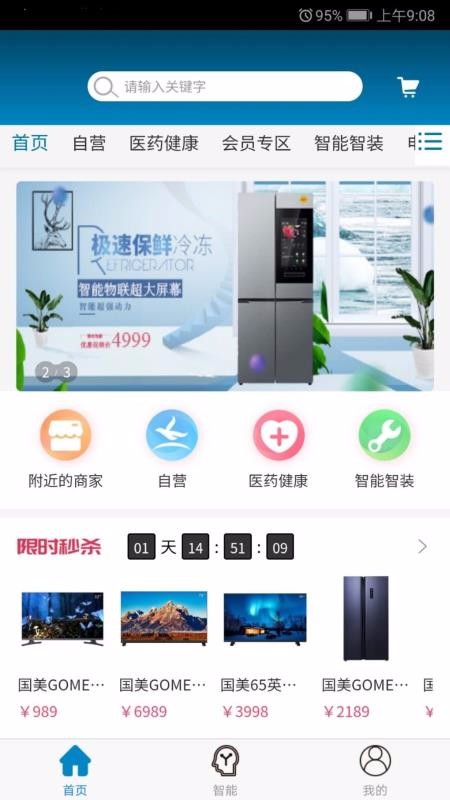 4、进入首页,查看限时秒杀、附近商家、医药健康等