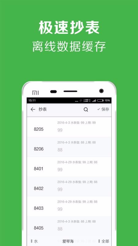 4、离线缓存所有的抄表数据,随时都能打开抄表查看以前的抄表记录信息;