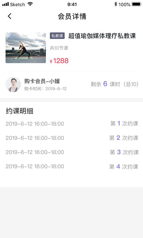 5、老师可以查看购卡会员的约课明细,并根据约定的时间联系对方;