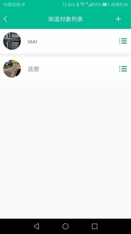 5、进入测温对象列表,点击右上角的加号即可添加对象