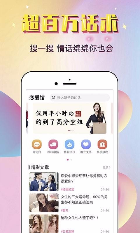 2、精彩文章让你在线学习更多的恋爱方式,,提高你们的感情,避免踩雷;