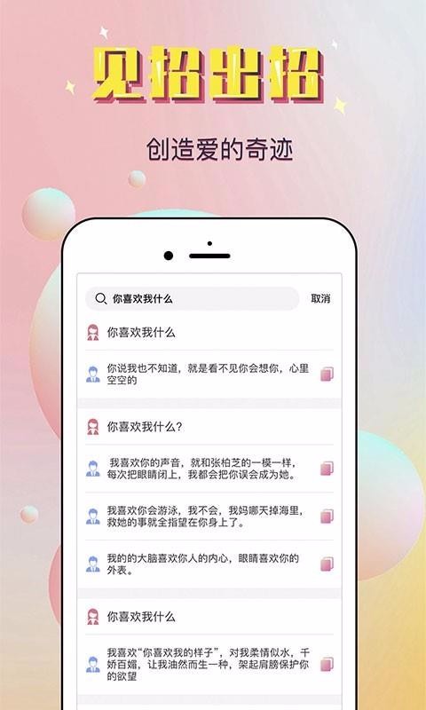 3、暧昧套路,为用户提供众多的暧昧小套路,让对方能在你的套路下进一步提高好感;