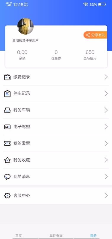 1、一键下载贵阳智慧停车app,点击注册登录后绑定车牌