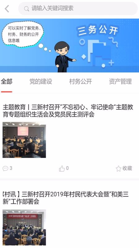 1、提供有关三新新闻,用户随时都能查看,随时了解对村民有利的新闻资讯信息;