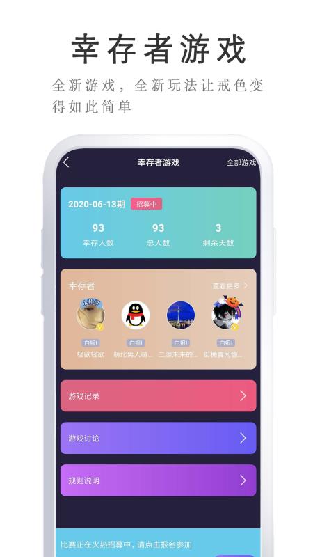 6、点击幸存者游戏,查看游戏记录、游戏讨论、规则说明
