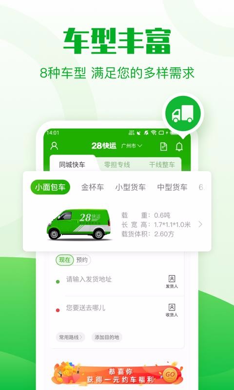 28快运是一款专业的线上运货软件,让用户需要的货运要求快捷轻松的得到满足;用户送货、搬家、物流等同城货运更便捷,全体24小时随时接单,让用户能快速简单的满足需求,解决你的出行问题,每位司机都经过专业培训,保证对用户的服务更贴心;占据大面积的工业、物流等市场,包括采购、批发、零售都接单,更有工作货拉拉、搬家、运货等,28快运都能实现,让同城的物流、货运市场都由我们完成,给用户放心的使用我们28快运,让用户全面的用车需求得到满足,帮助用户完成需要的喜欢的用车服务。
