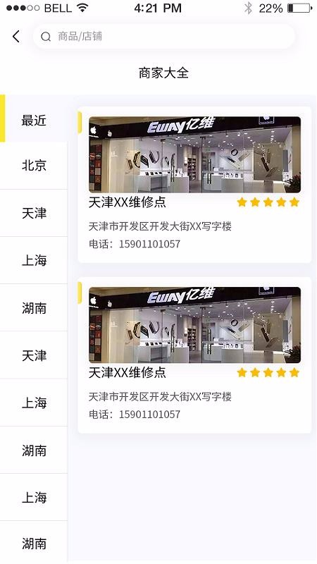 2、每一家店铺都有详细的地址,在用户不忙时,也可以自己将手机送到店铺中;