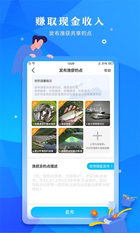 4、发布自己发现的优质钓点信息,赚取一定的现金收益