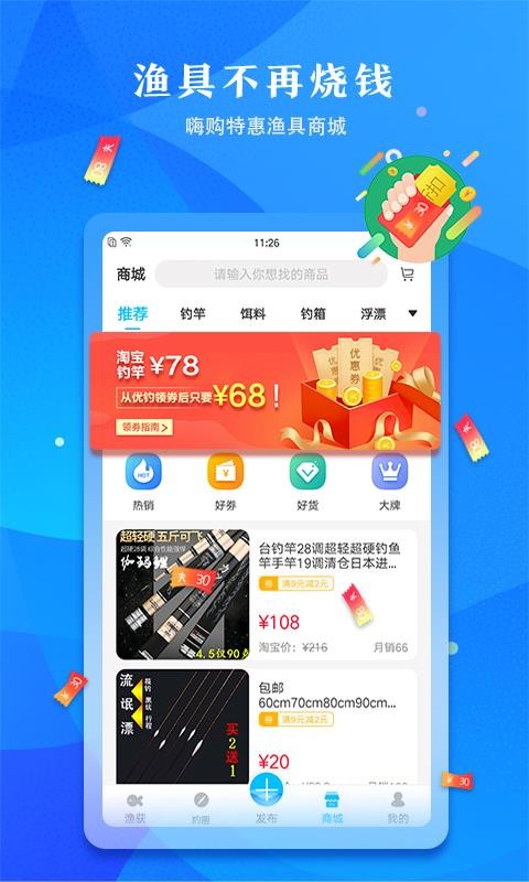 5、提供渔具商城,用户可以在这里找到各种各样的低价商品,便捷的进行购买;