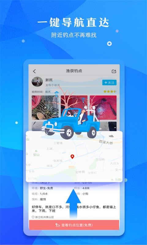 4、拥有导航功能,一键导航至附近的优质钓点,方便快捷的进行钓鱼;