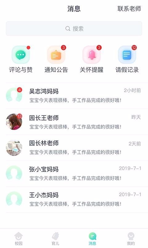 4、消息提醒,随时为你提醒评论与赞、通知公告、关怀提醒和请假记录;