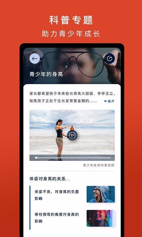 2、进入首页,查看体姿测评、生长评估、身高评估、专家在线等