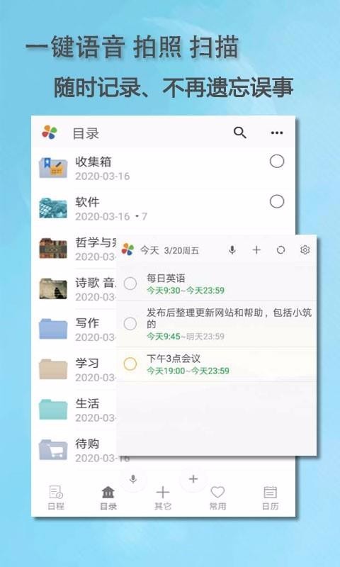 5、一键语音录入和拍照扫描,让你随时轻松进行记录,不遗忘误事;