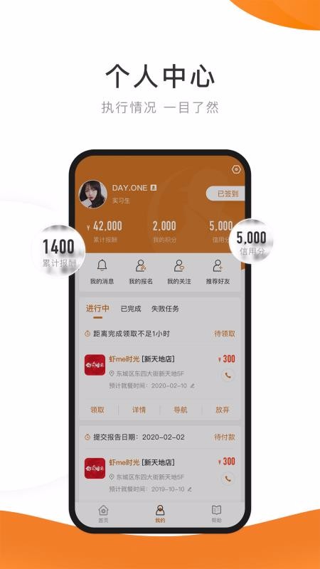 6、各种任务执行情况在个人中心一目了然,划分了进行中任务、已完成以及失败任务;
