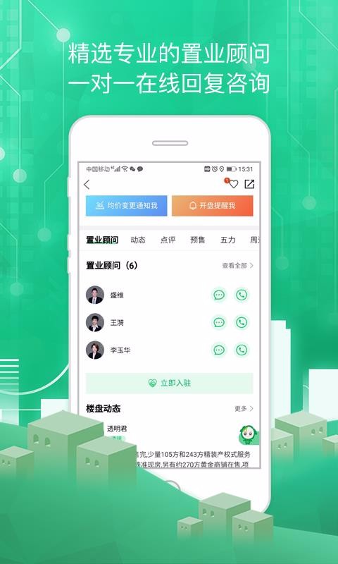 6、置业顾问:提供众多的置业顾问,支持直接选择顾问进行在线的咨询;