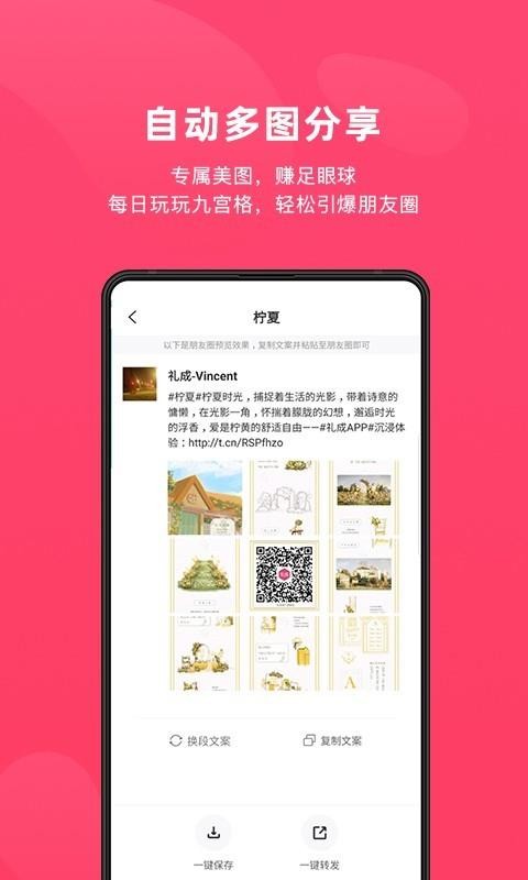 5、支持自动生成九宫格和文案,并且用户能够反复切换文案,让朋友圈每天都是新鲜内容;