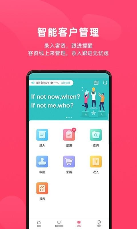 6、应用中有智能客户管理功能,用户可以进行录入、跟进、采购、审批等各种操作;