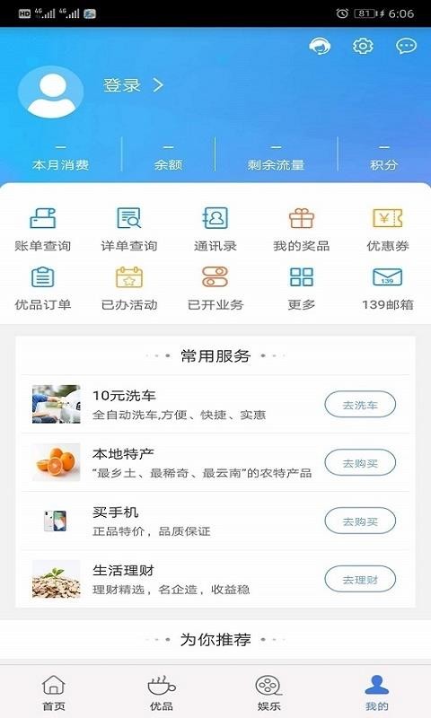 云南移动和生活app是中国移动为云南用户打造的软件,用户可以通过软件进行各种手机卡业务操作,方便快捷;应用中包含多种功能,你可以快速的在这里对自己的手机卡进行充值缴费和各种业务的退订、办理等,让你的日常生活变得更加方便,拥有更优质的手机卡使用体验;在这里你还可以进行各种账单的查询,及时了解账单欠费信息并进行费用缴纳;你还可以在应用中购买到各种价格优惠的云南特产和其他商品,让你省钱省力又省心;如果你想方便快捷的进行手机卡相关业务操作,购买物美价廉的商品,那就下载软件试试吧。