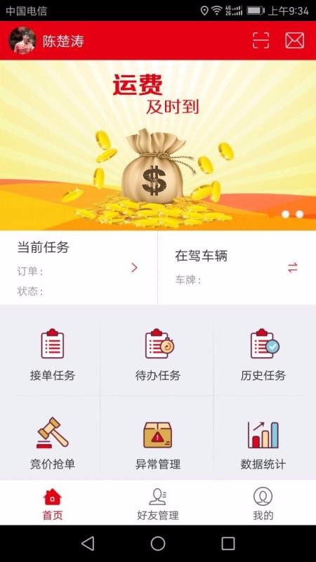 3、在首页界面就能看到当前的任务信息,帮助用户更好地了解当前的订单以及状态;