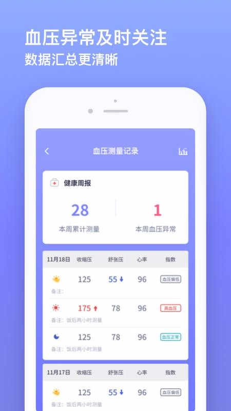 【数据统计】:汇总过往血压测量,及时发现异常情况