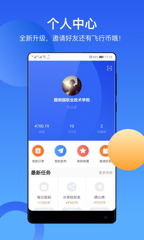 2、在个人中心,查看我的订单、我的发布、我的收藏和最新任务