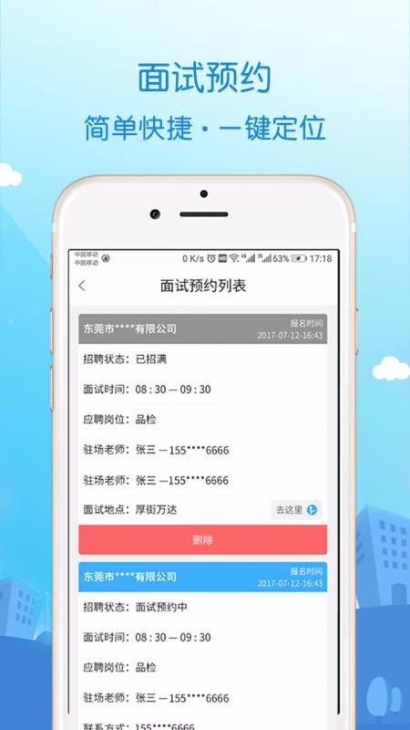 6、面试预约:可以查看自己全部预约记录,选择删除已经不需要的预约;