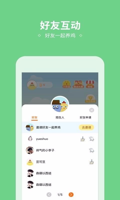 3、邀请自己的好友一起来养鸡,支持在好友列表中邀请好友一起来养鸡;