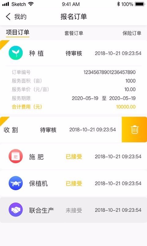 6、划分了不同的订单栏,同时提供了项目订单、套餐订单,还有保险订单专栏;