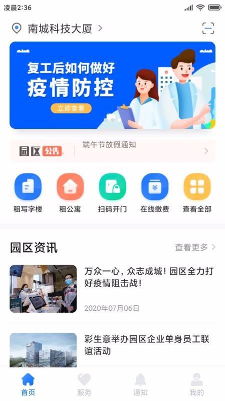 1、在平台上能够看到很多的园区资讯内容推荐,用户可以轻松选择资讯进行了解;