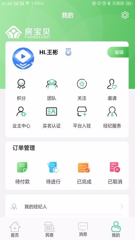 2、接收消息,用户可以直接在软件中和房东在线聊天,在消息界面查看;
