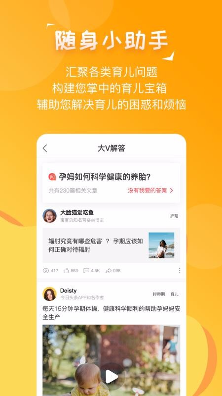 4、具有海量的育儿问题,轻松搜一搜就能找到答案并且还可以获得各个大V对问题的理解和解决方法;