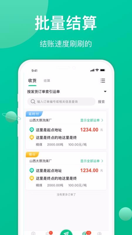 3、结算,收到货后货主就能实现直接在平台上进行批量结算,非常方便;