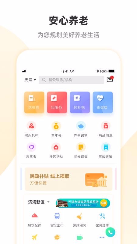 2、支持在线找便民服务,让养老生活更加的便捷,生活能够更加的舒适;