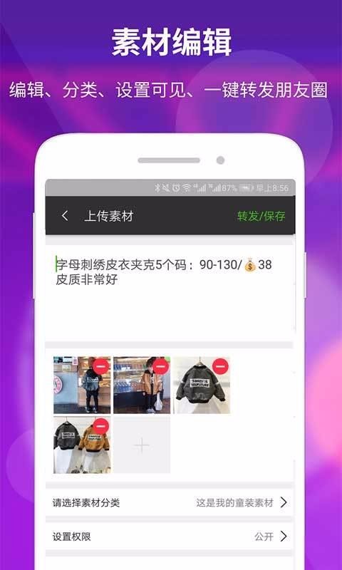 素材空间是一款高效的素材管理应用,app创建了一个便捷的素材管理空间,在每一条素材上面都自动设置了对应的删除、下载、编辑与转发的工具,对看到的素材能快速的处理;用户可以将自己手机本地上面的素材资源上传导入到平台上面保存,从另一方面来看其实为自己的手机节约清除了许多的空间,也让自己想要的素材得到一个永久保存的空间;只要自己的账号不损毁就能随时登录到应用中同步到所有的素材;便捷的素材分类让素材更加容易查找与管理,上传之前还能设置自己上传的素材是否公开可见,既支持公开分享自己的资源,又能隐秘上传素材。