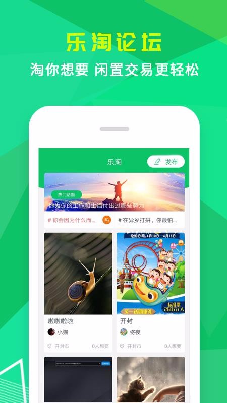 1、用户可以直接在乐淘论坛中淘商品,有看中的直接与发布者沟通交易;