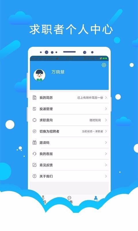 3、在求职者个人中心,可以点击查看我的简历、投递管理、求职意向、我的客服等