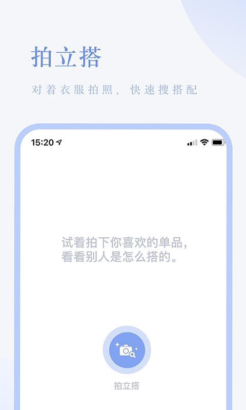 1、快速进行搜索,用户只要进行拍照或者衣橱选择单品,即可进行马上搜索;