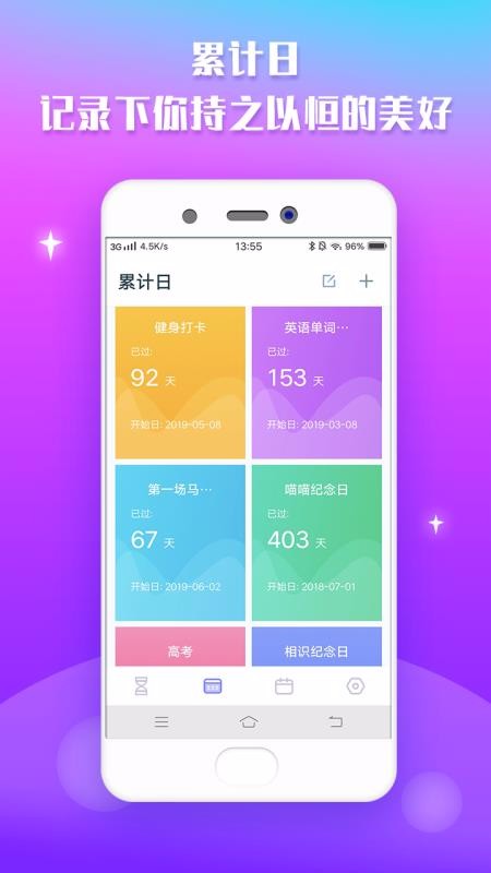 5、在累计日页面,即可知道各个事情坚持完成的时间