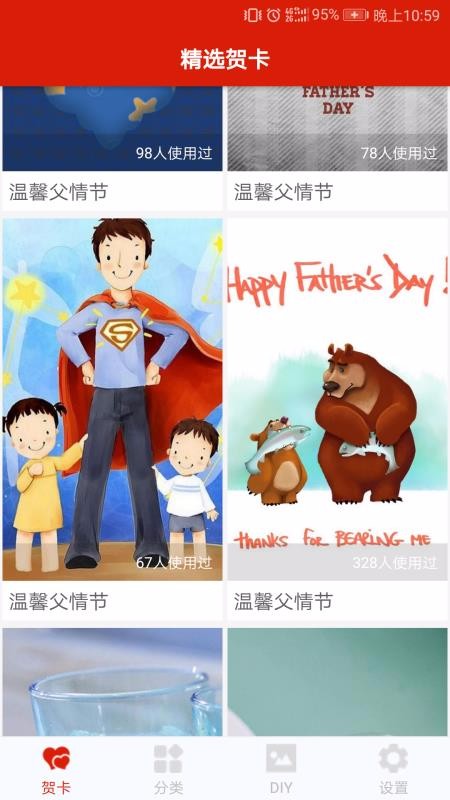2、进入APP界面,根据节日选择对应的贺卡模板