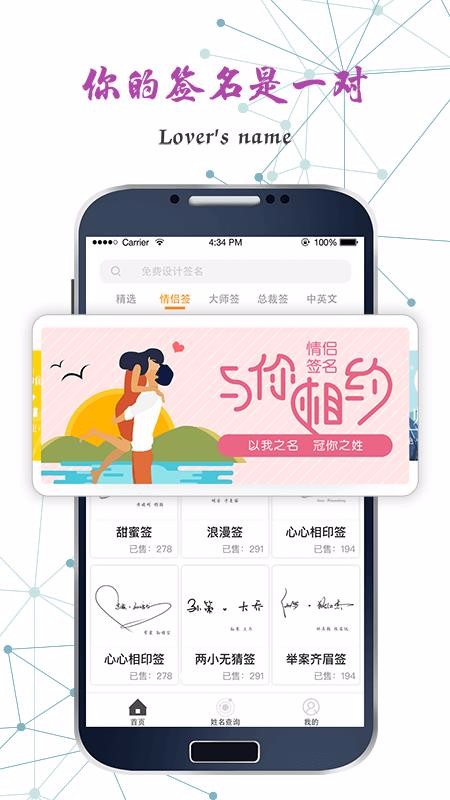 【专属情侣签】多款专为情侣设计的签名设计,心心相印签、甜蜜浪漫签、两小无猜签、情投意合签、白头偕老签等;定制属于你们的专属甜蜜记忆