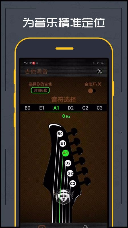不同琴头视觉效果,这样就可以使调音应用的琴颈看起来像你的吉他琴颈一样(在设置中可改变调音应用的视觉效果)