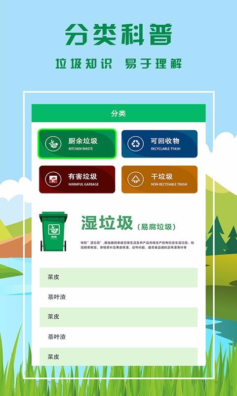 3、分类科普:提供分类科普,通过分类的形式进行垃圾的科普,能够更有利于更好的理解;